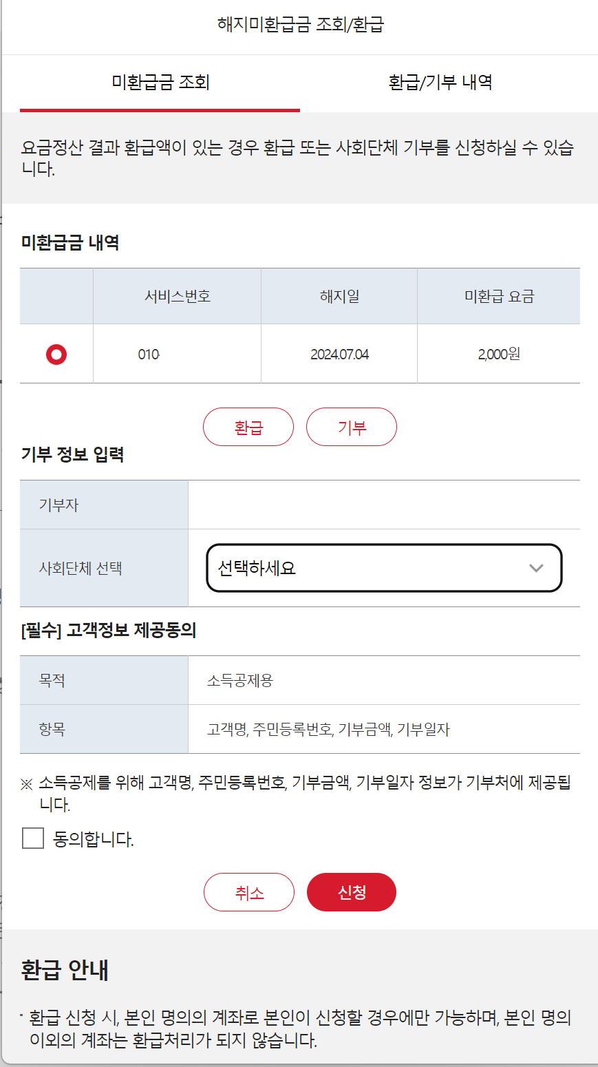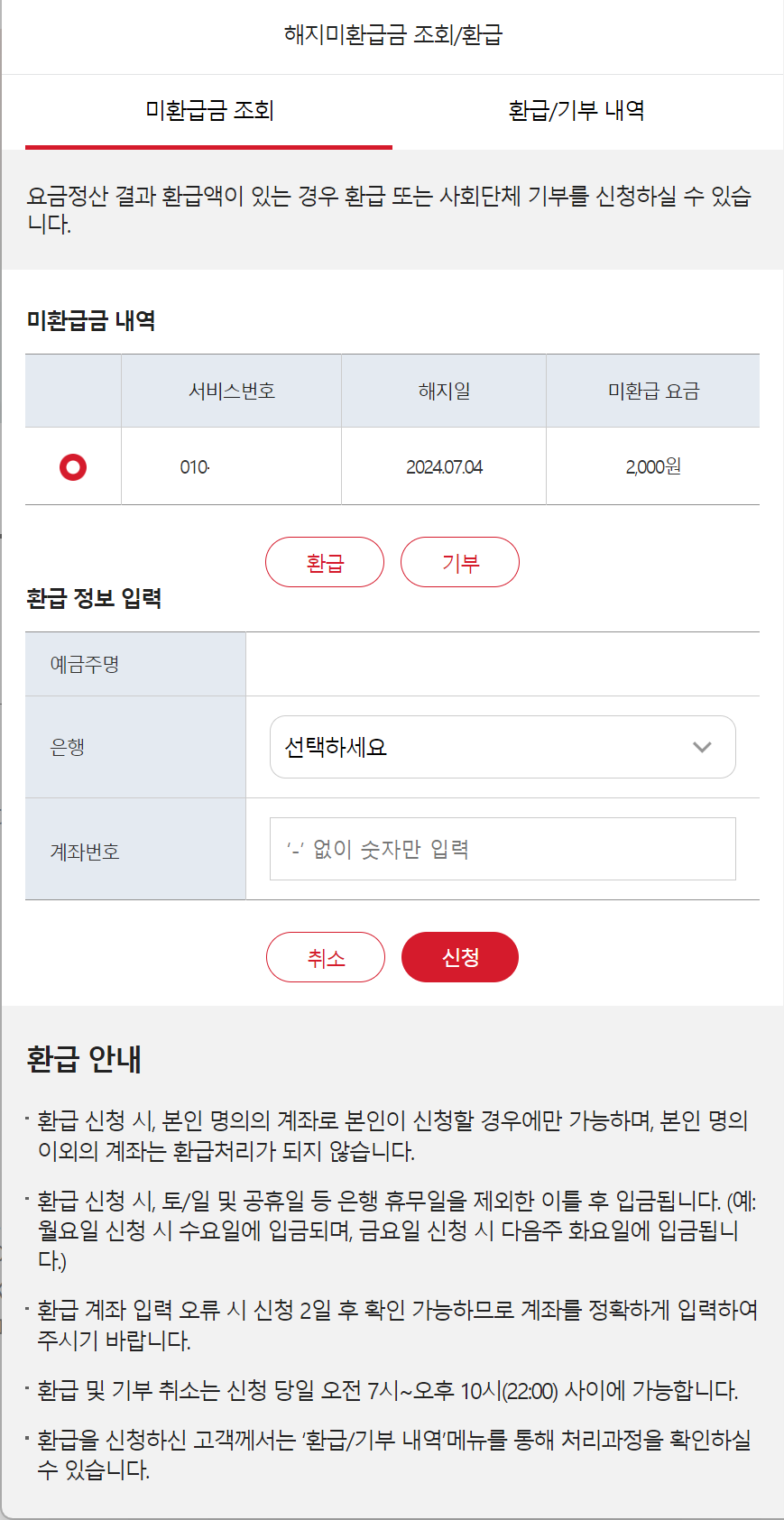 통신사 과오납 등 유보금 미환급 요금 조회 및 환급 신청 방법