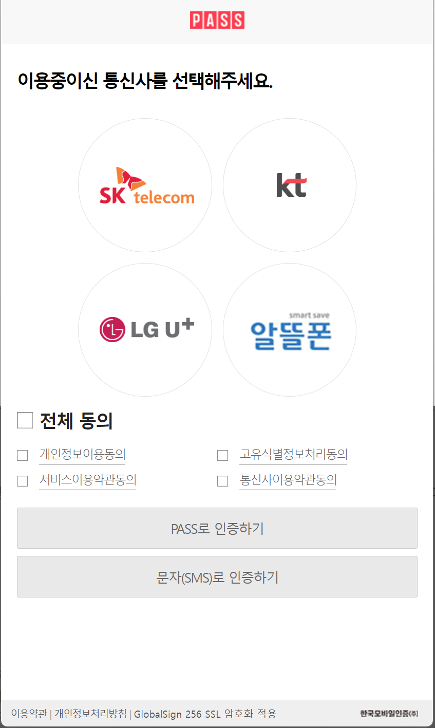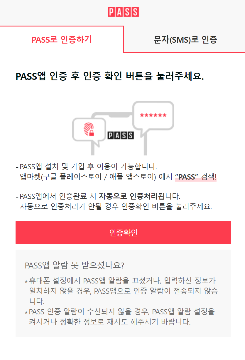 아래의 팝업창이 뜨게되면 조회하기 클릭 후 본인인증을 진행합니다.